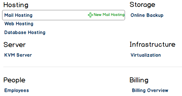 This page shows you the services overview page of the reseller. The view is the same as the overview page, but without the people and billing information.